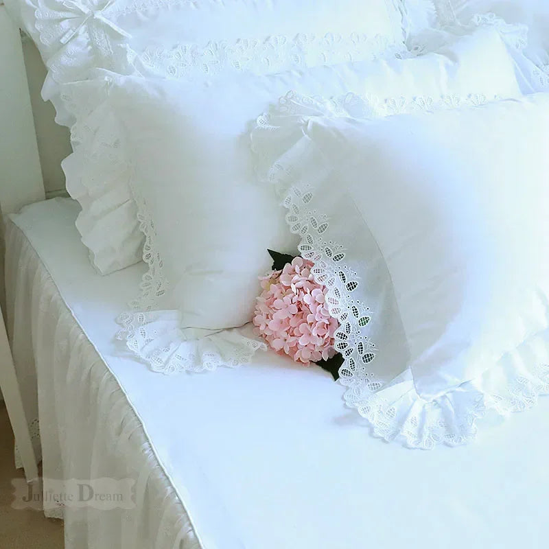 1 piece Princess Pure White Double Layer Lace Flounced Cotton Wedding Pure Cotton Bedding Pillowcase pillow cover fall decor