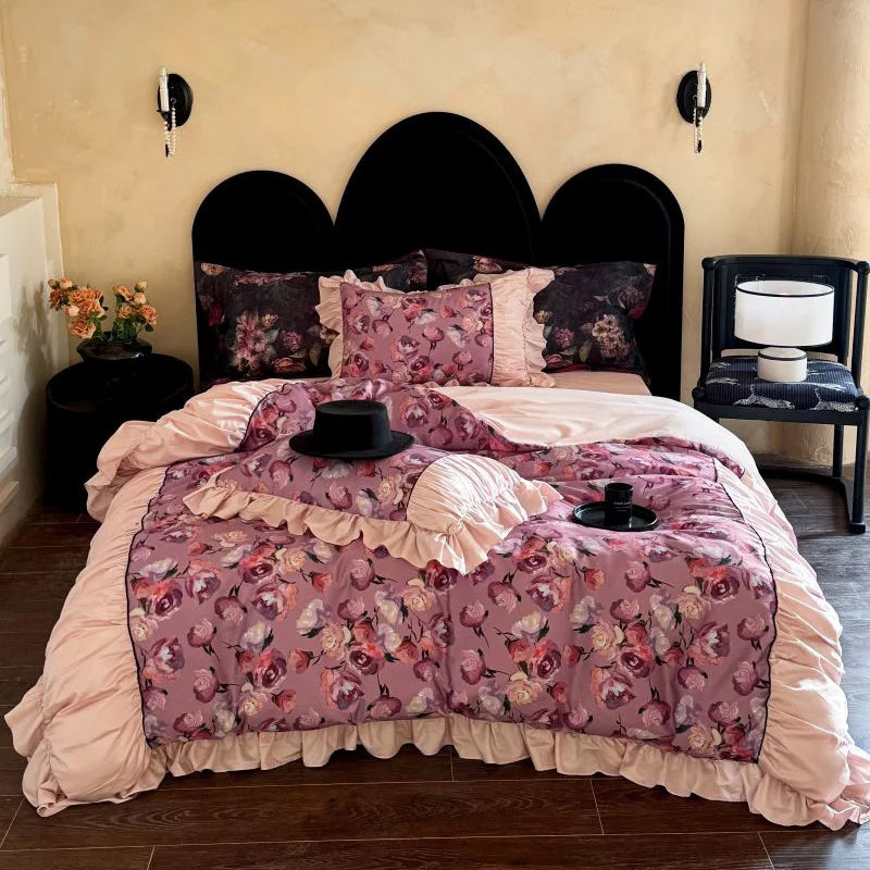 100% Cotton! Floral Bedding Set Romantic For Women Duvet Cover Set 4pcs Bedding for Winter Bed Sheet Pillowcases Home Textiles