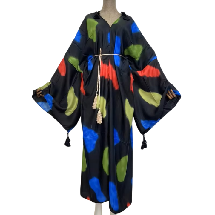 - Details: Batwing sleeve loose fit with cord tassel belt