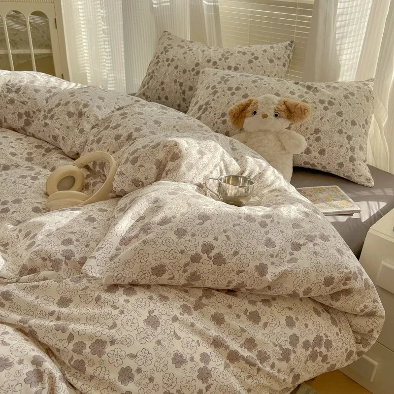 2025 new class A aerobic knitted cotton printing small fresh four-piece set. bed sheet. bed hat four-piece set