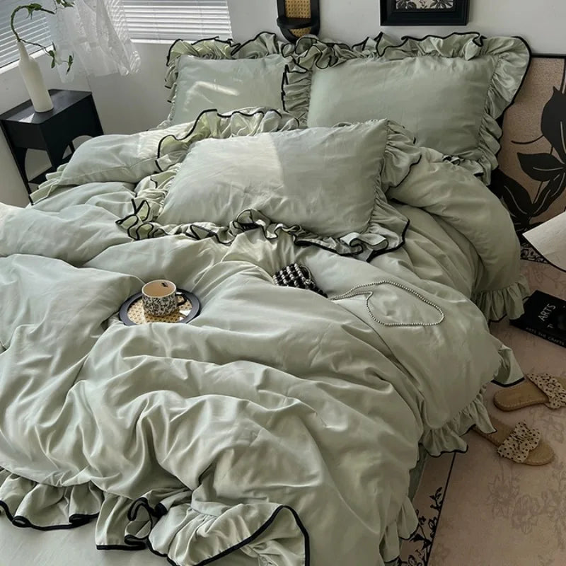 2025 summer ice silk Korean large lace washed silk four-piece set lace mattress cool bed sheet summer bedding