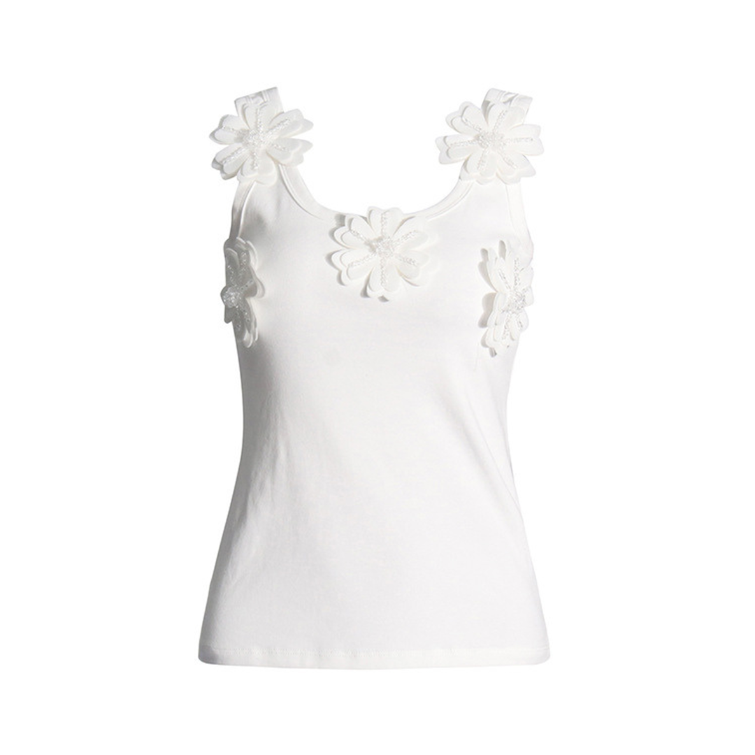 Introducing our 3D Flower Slim Camisole Top. Made with 3D flower patterns. this top offers a slim fit for a flattering silhouette. With its unique design. it adds a touch of elegance to any outfit.