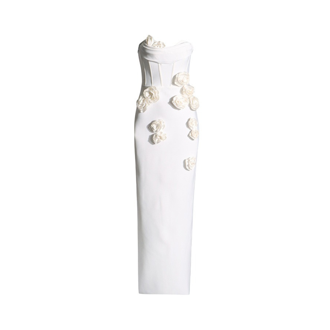 This elegant dress features a 3D rose corset design that creates a slimming effect. With its intricate details and figure-flattering fit. you'll feel confident and beautiful at any evening event. The perfect blend of style and sophistication. this dress is a must-have for any fashion-forward individual.