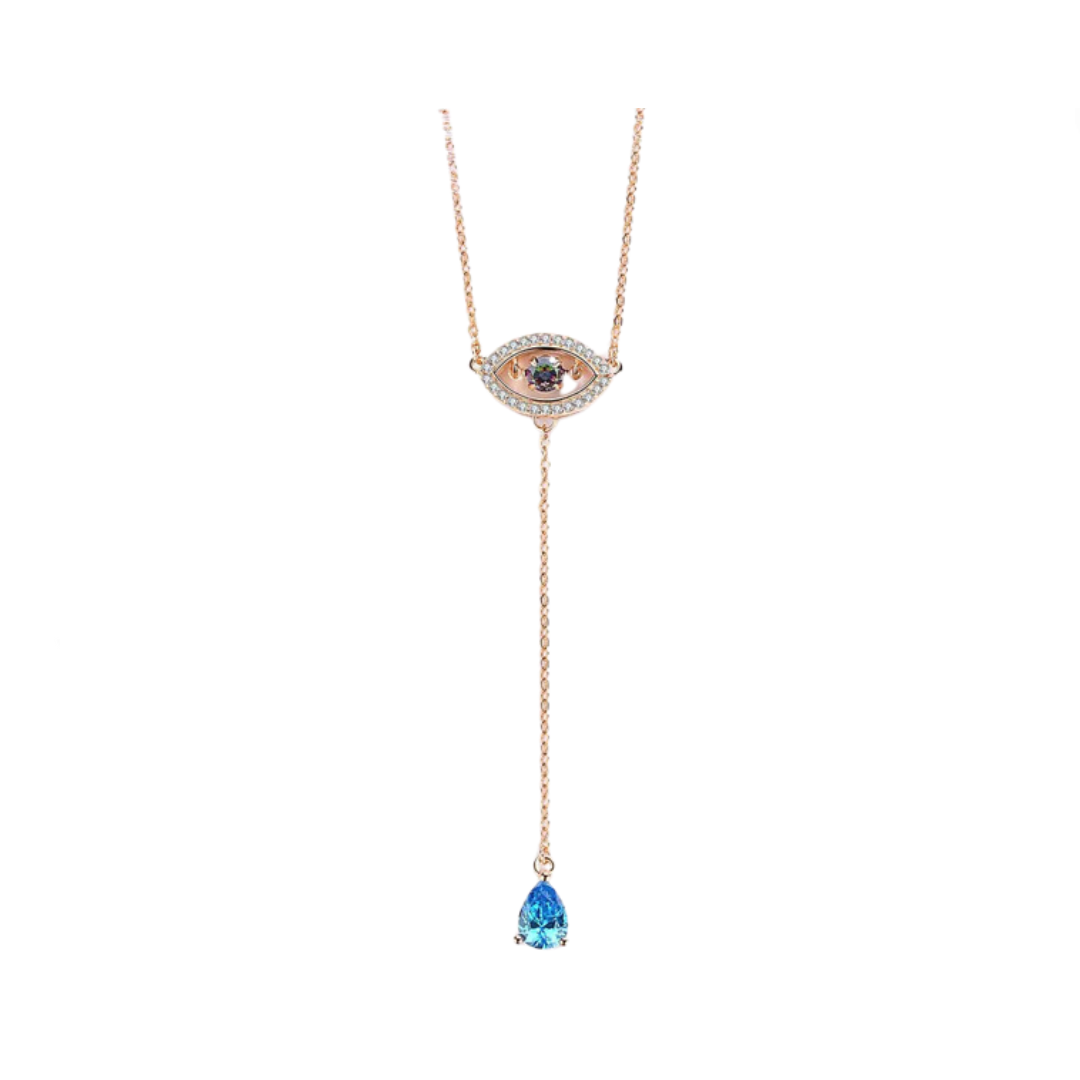 Expertly crafted from 925 sterling silver. our Water Drop Zircon Pendant Eye Necklace is a stunning piece of jewelry that will elevate any outfit. The intricate design features a sparkling zircon pendant. symbolizing protection and clarity.