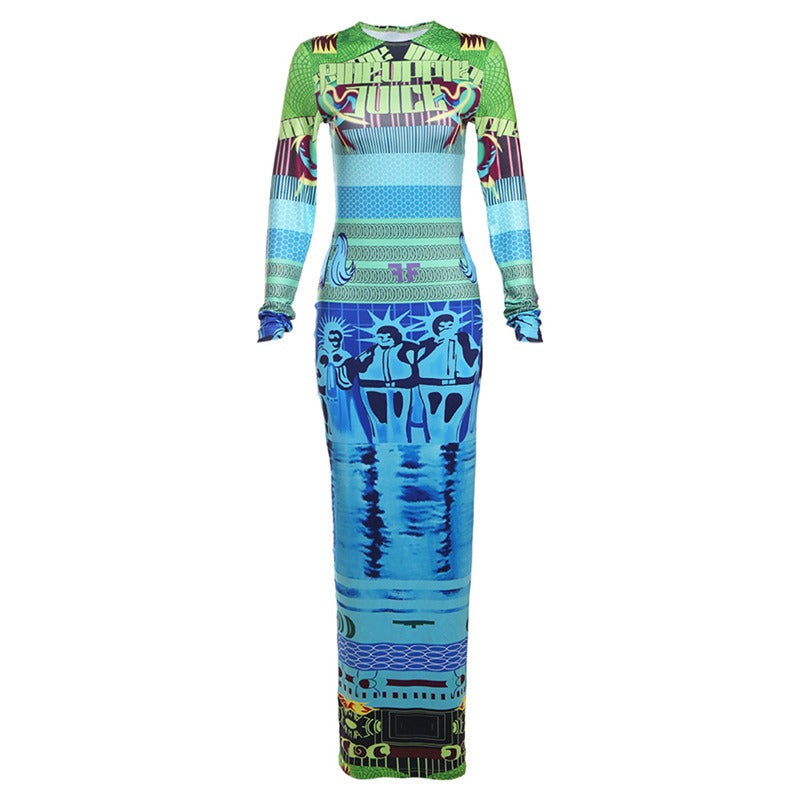 The slim fit design flatters any body type while the long sleeves provide additional coverage. With its abstract pattern. this dress is a versatile and stylish addition to any wardrobe.