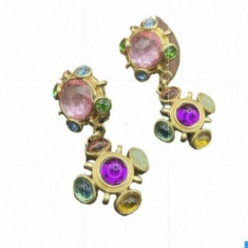 These Antique Colorful Rhinestones Drop Earrings are crafted with high-quality copper alloy and adorned with vibrant rhinestones. The dopamine color matching makes them a perfect accessory for any outfit.