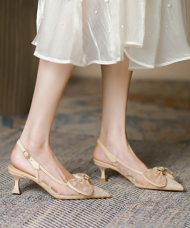 Apricot Classy Splicing Bow Stiletto Sandals Pointed Toe