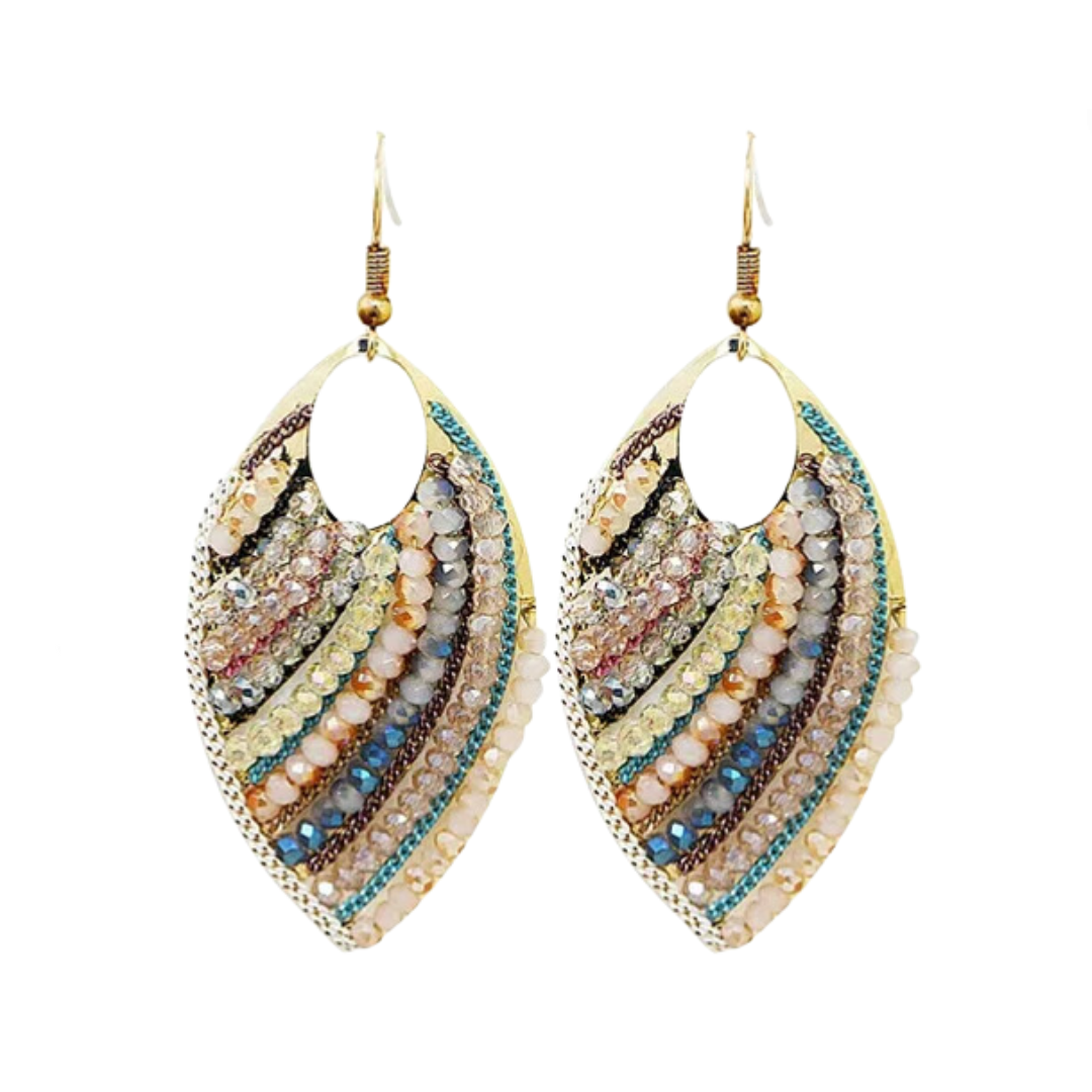 Crafted with intricate beadwork and a delicate leaf design. these earrings are sure to make a statement. The lightweight construction makes them comfortable to wear all day long.