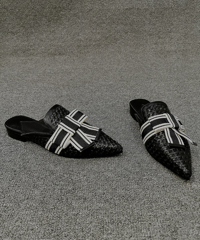 Beautiful Black Bow Splicing Slide Sandals Pointed Toe