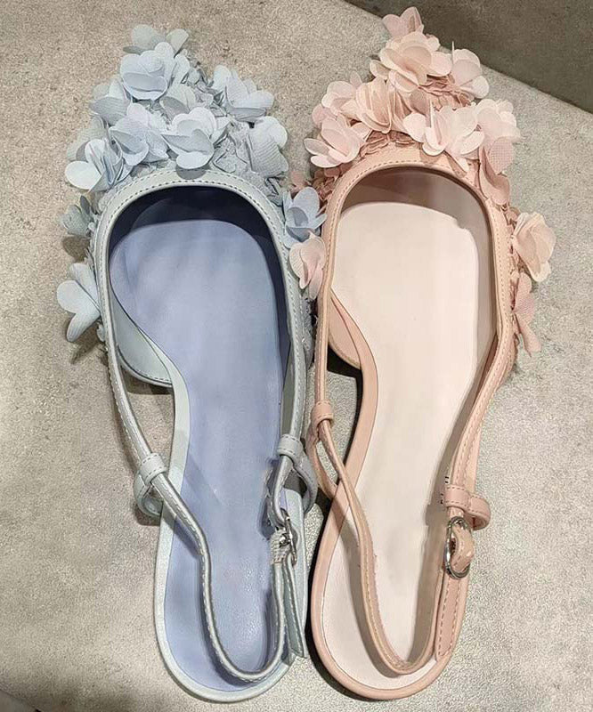 Beautiful Light Green Satins Flowe Buckle Strap Flat Sandals