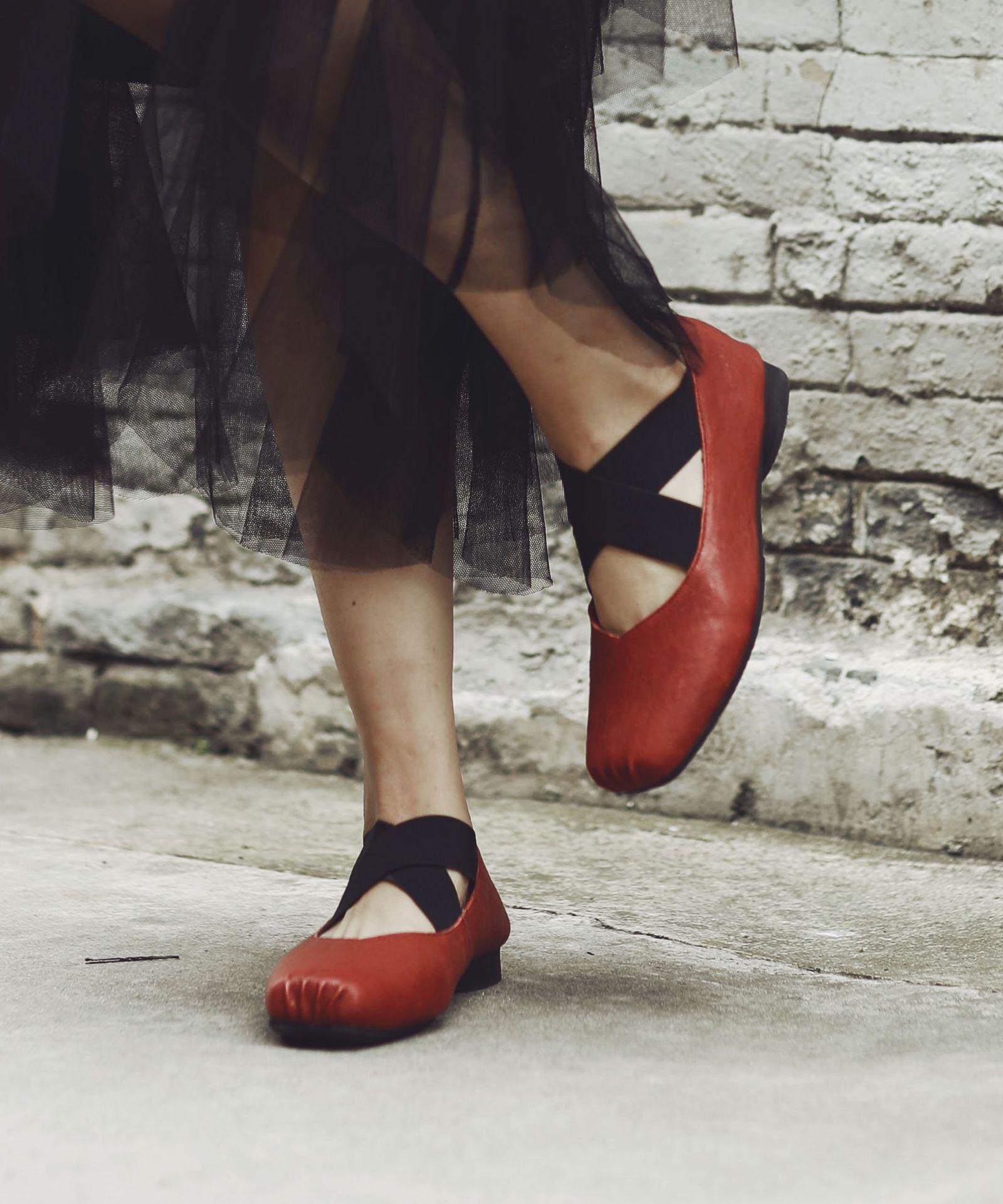 Beige Ballet Flats Shoes Cowhide Leather Boutique Cross Strap Ballet Flats Shoes