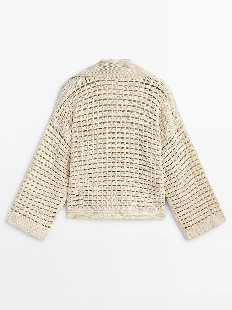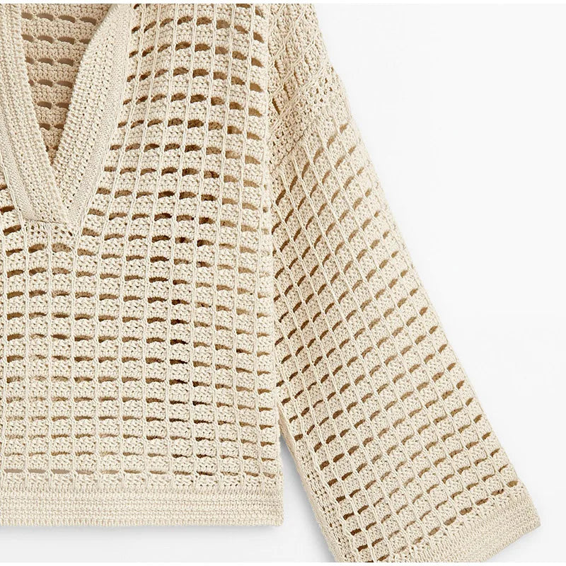 Pre Order:  Beige Knitted Hollow Out Top