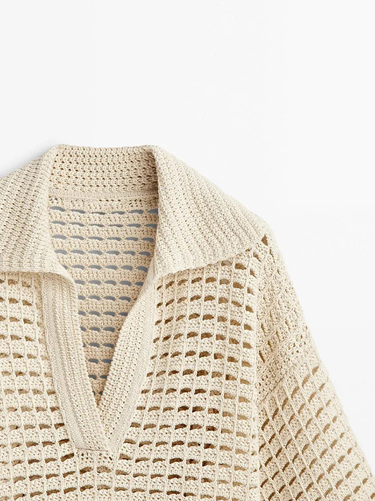 Pre Order: Beige Knitted Hollow Out Top