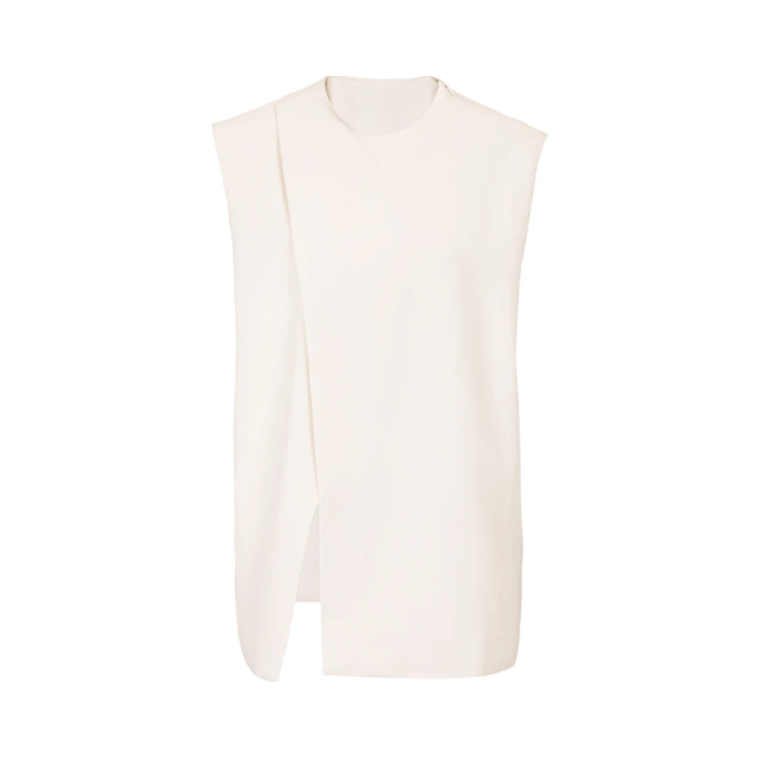 Expertly designed for the fashion-forward woman. this Beige O-neck Asymmetric Split Top is a must-have for your wardrobe. Made with soft and comfortable fabric. this top features an o-neck design and sleeveless cut. Its asymmetrical split adds a touch of unique style. making it a versatile and stylish addition to any outfit.