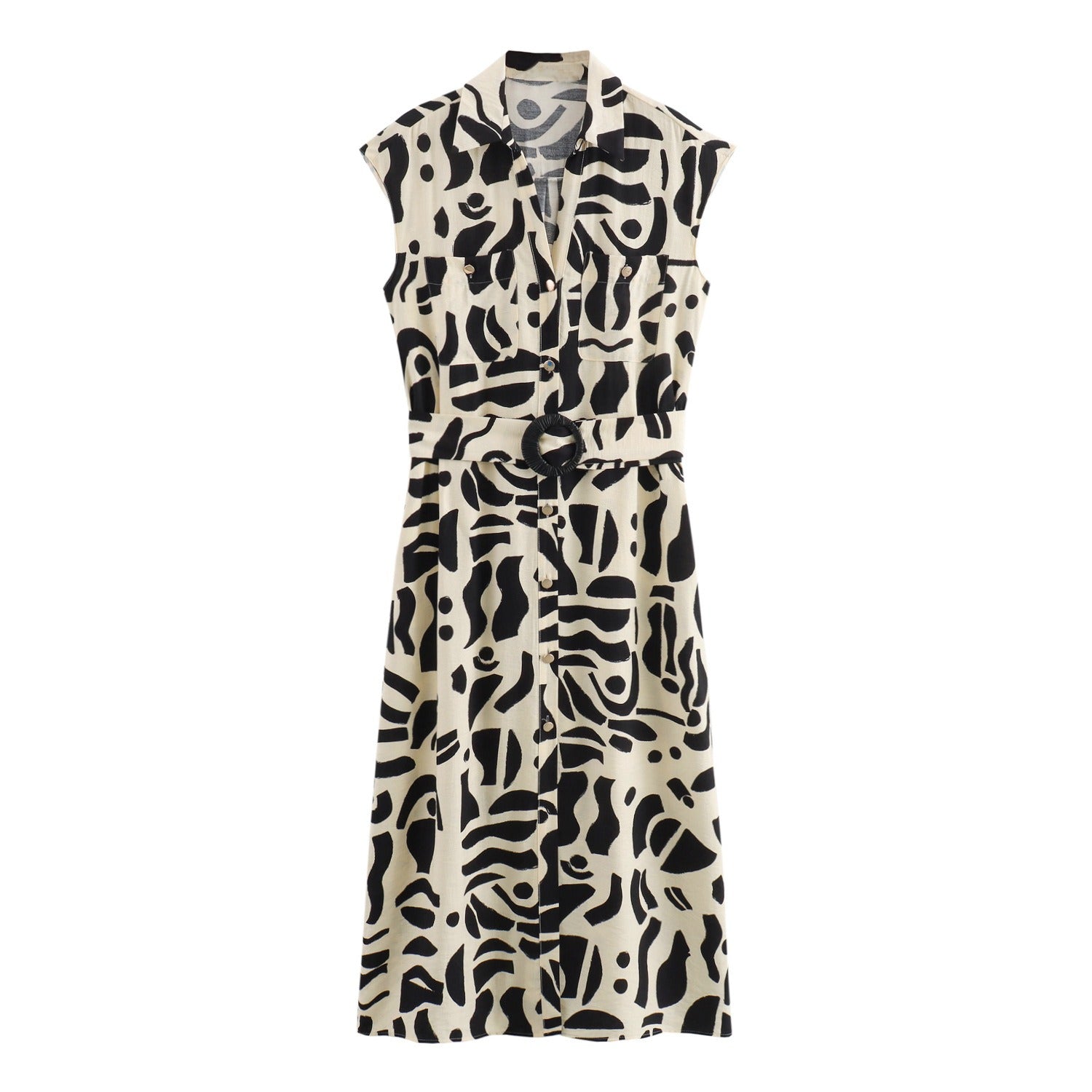 This dress combines style and comfort with its classic shirt dress design. complete with a belted waist for a flattering fit. The print adds a touch of elegance. making it perfect for any occasion.