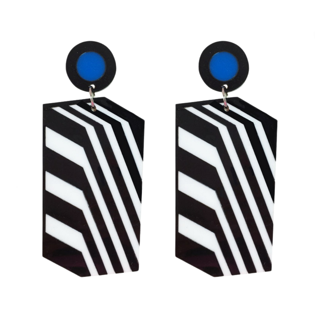 Expertly crafted. these Big Acrylic Stripe Drop Dangle Earrings feature bold stripes of color and a sleek. modern design. Made from acrylic. these statement earrings are lightweight and comfortable to wear.