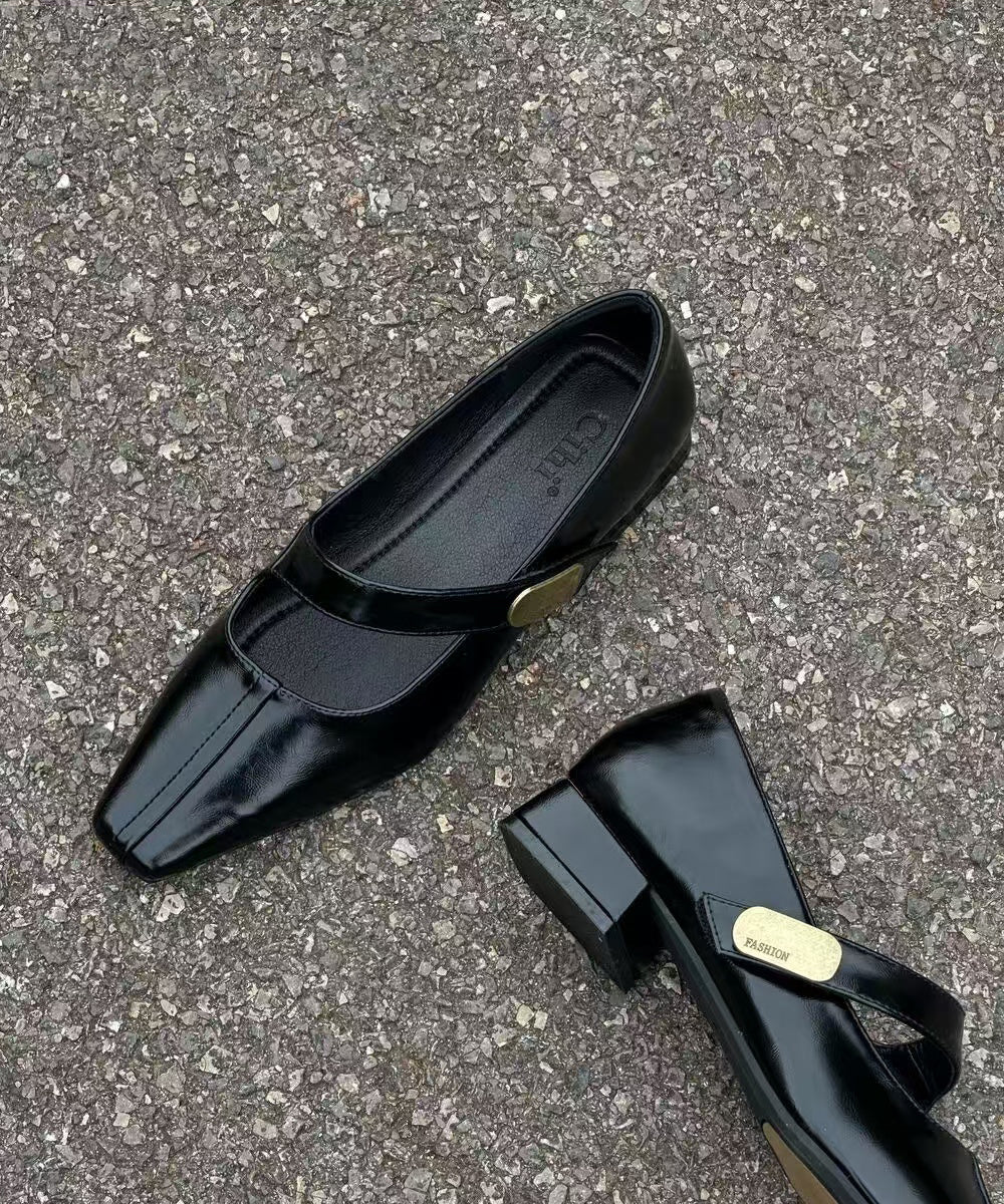 Black Buckle Strap Splicing Chic Faux Leather Chunky Shoes