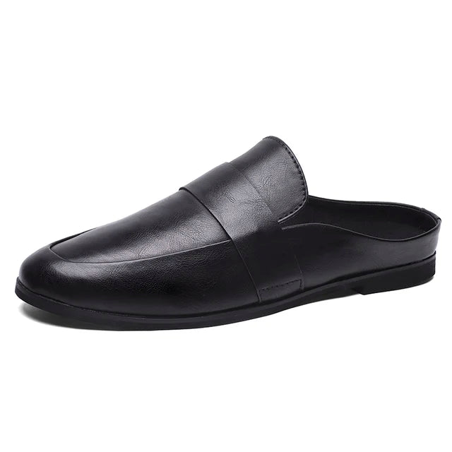 These leather shoes offer a loose fitting design. making them perfect for casual wear. Plus. the one-kick off feature adds an extra level of convenience.