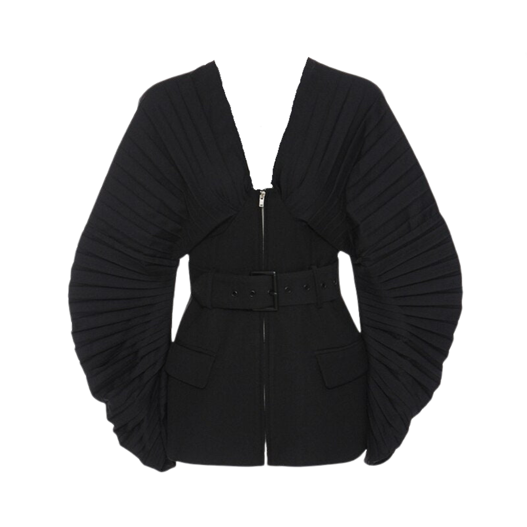 Expertly tailored. this Black Pleated Belt Blazer exudes sophistication and style. The pleated detailing adds a subtle touch of elegance. while the built-in belt cinches the waist for a flattering silhouette.