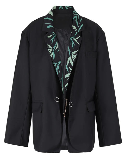 This blazer is designed with a unique printed pattern. giving it a trendy and modern look. Its loose fit allows for comfortable and unrestricted movement. making it suitable for both work and casual occasions.