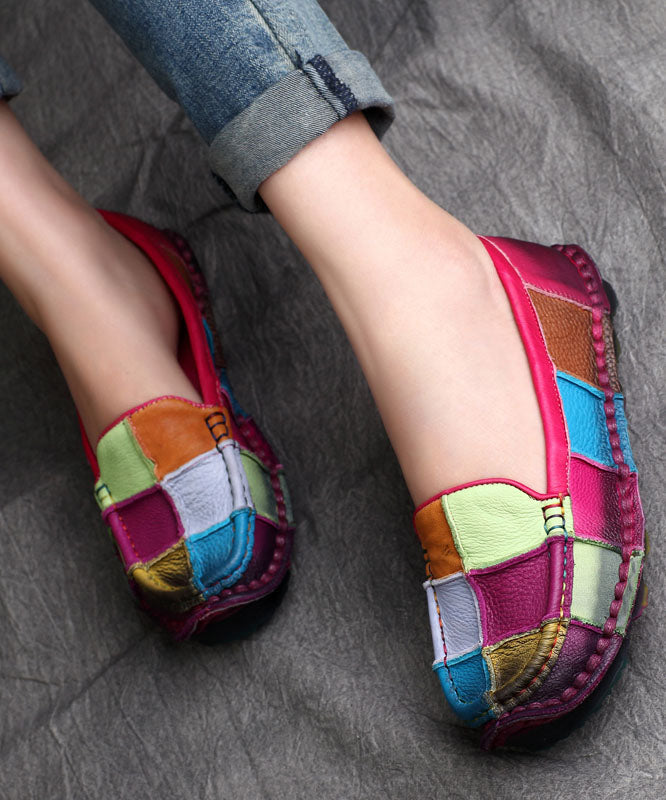 Blue Cowhide Leather Comfortable Splicing Flat Penny Loafers