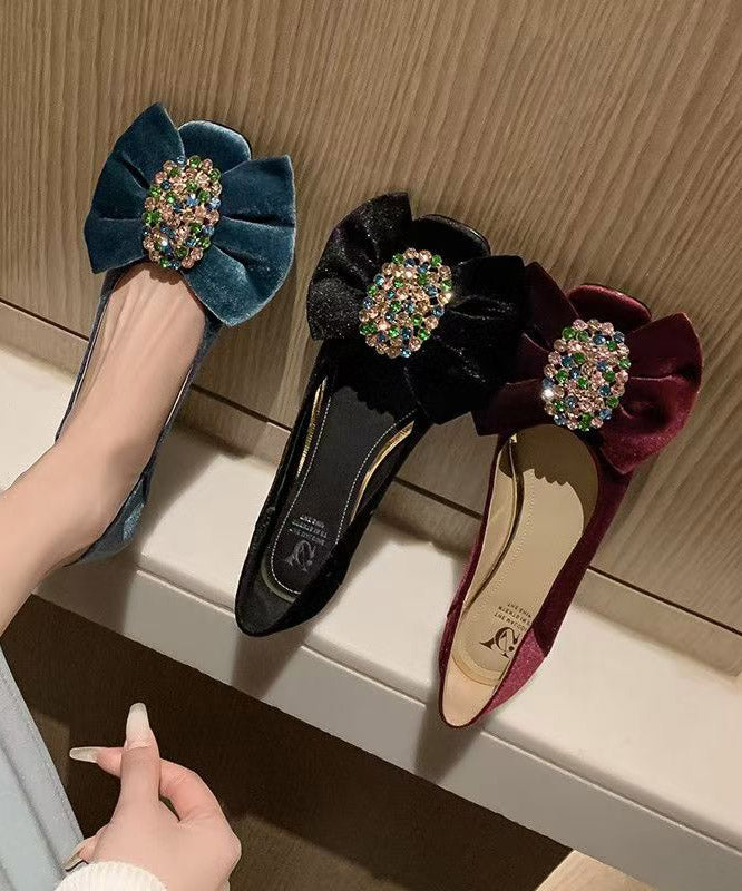 Blue Flat Feet Shoes Velour Chic Splicing Bow Zircon