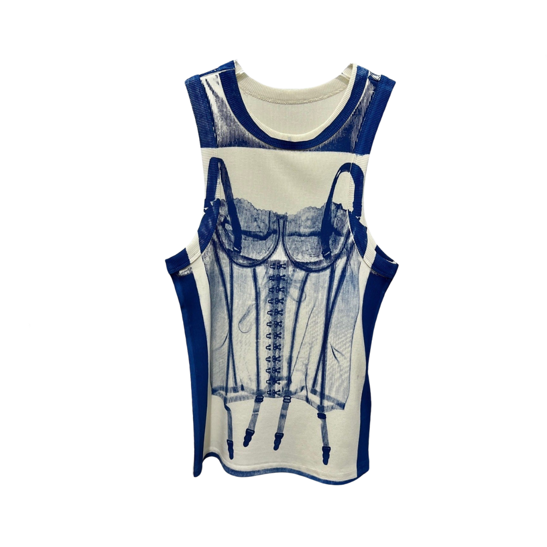 Expertly crafted with hand-painted details. this Blue Hand-Painted Slim Fit Vest is sure to elevate any look. Made with a slim fit design. this vest offers a modern and stylish silhouette.