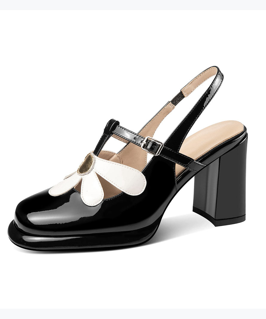Blue Sandals Chunky Cowhide Leather Elegant Hollow Out Floral