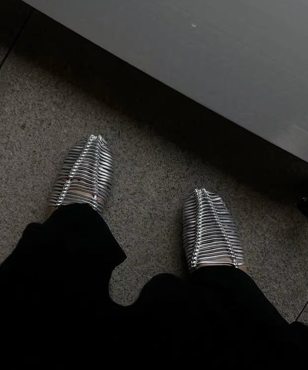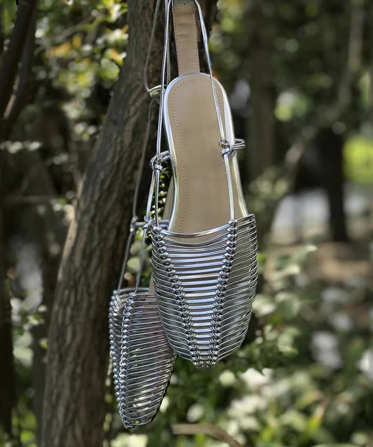 Boho Lace Up Splicing Holiday Flat Sandals Silver Hollow Out