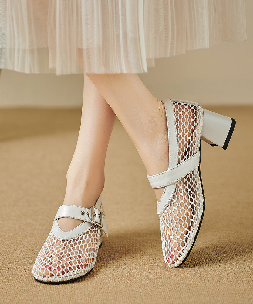 Boutique Black Buckle Strap Hollow Out Chunky Heel Sandals