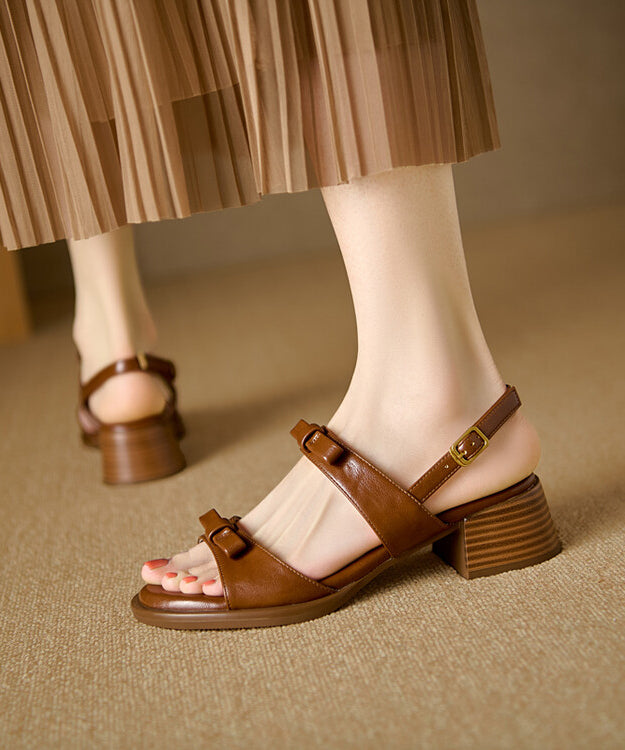 Boutique Brown Sandals Chunky Cowhide Leather Peep Toe