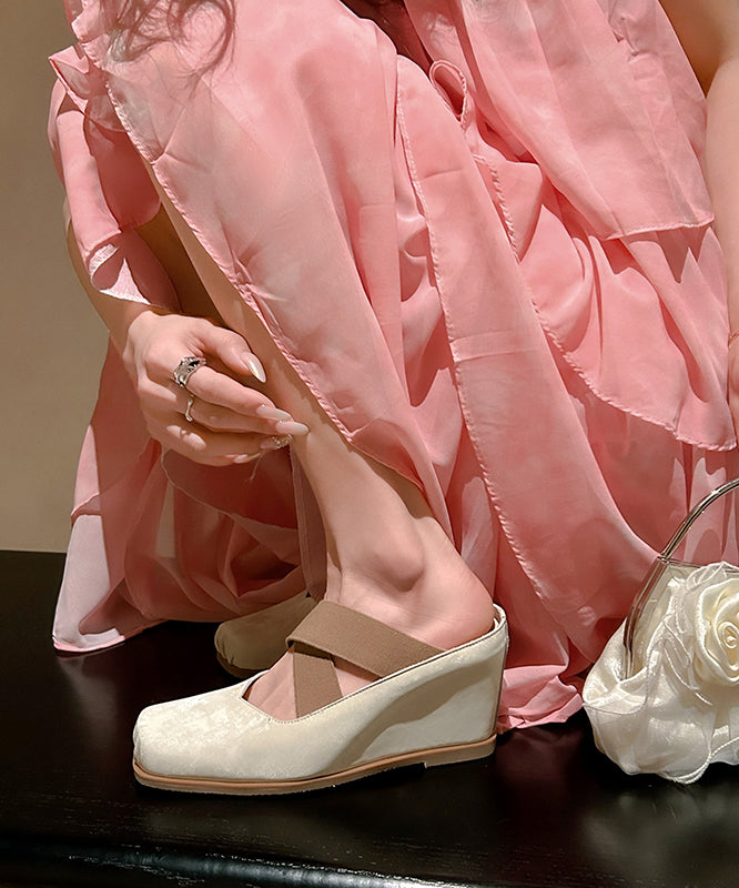 Boutique Khaki Splicing Cross Strap High Wedge Heels Slide Sandals