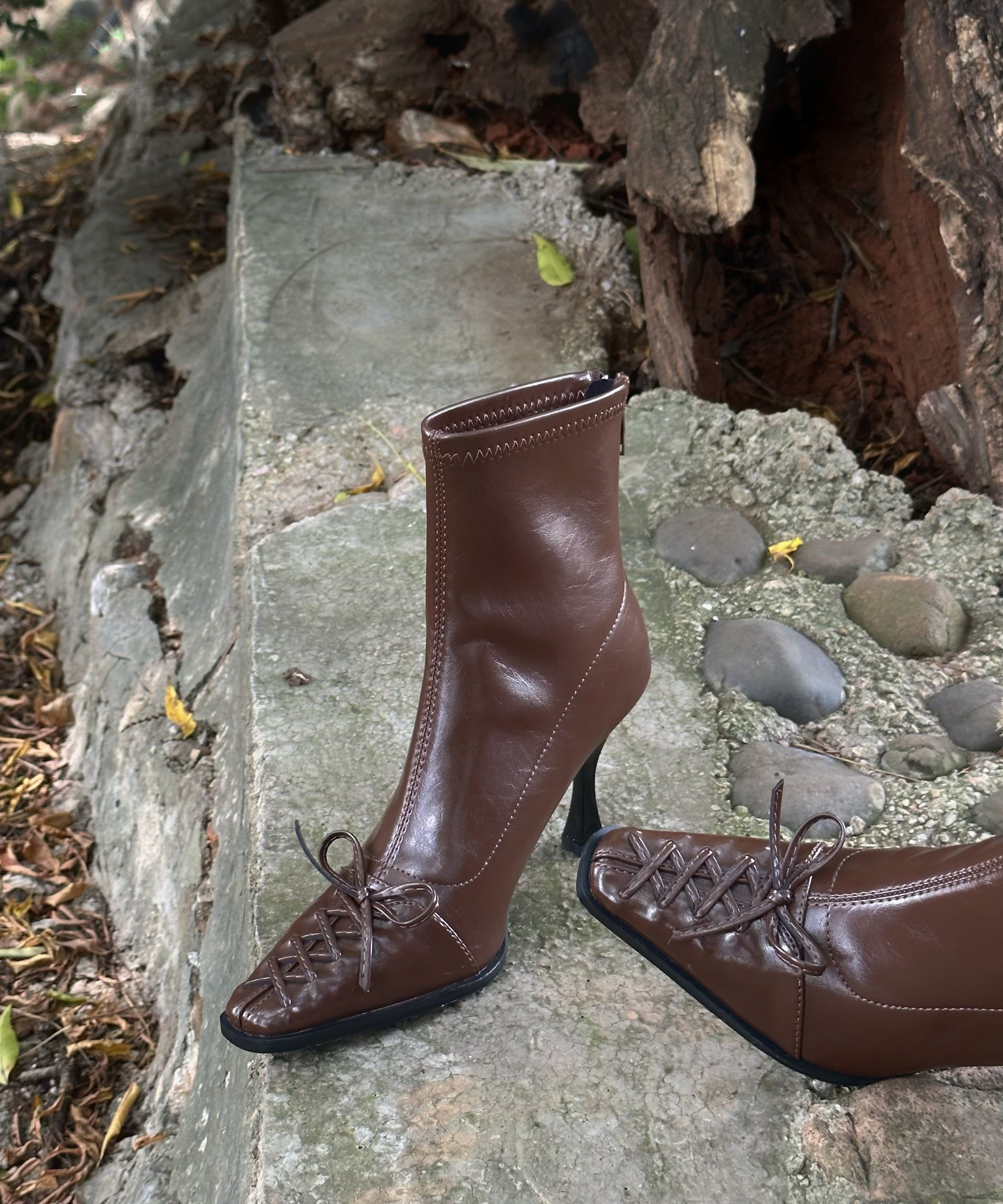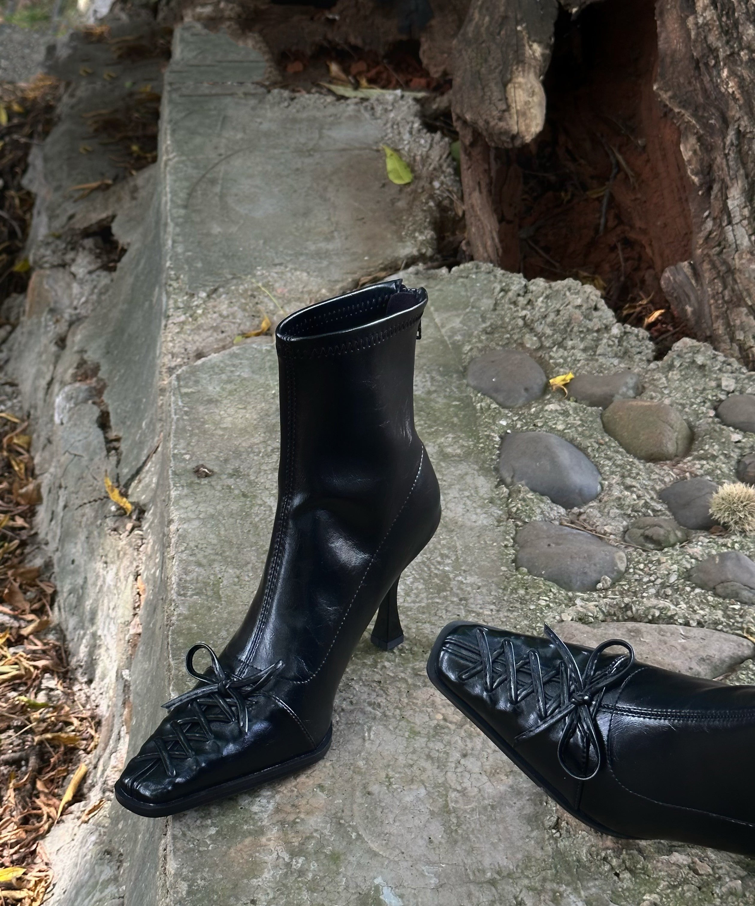 Boutique Splicing High Heel Boots White Faux Leather Bow