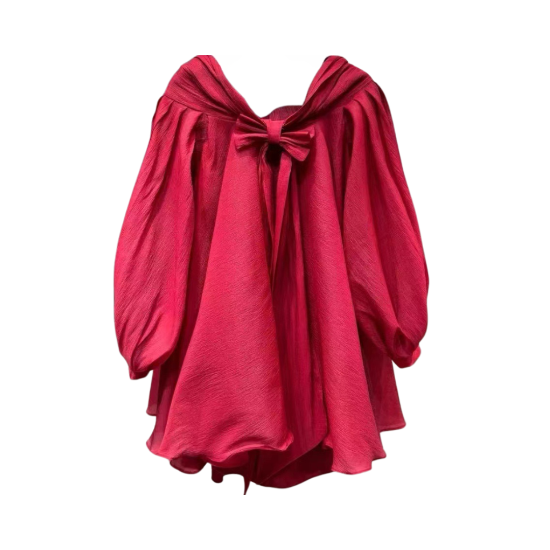 Crafted from soft and lightweight material. this Bowtie Lantern Sleeve Fluffy Mini Dress is a must-have for any fashion lover. Featuring elegant bowtie lantern sleeves and a comfortable fluffy mini design. this dress is perfect for any occasion.