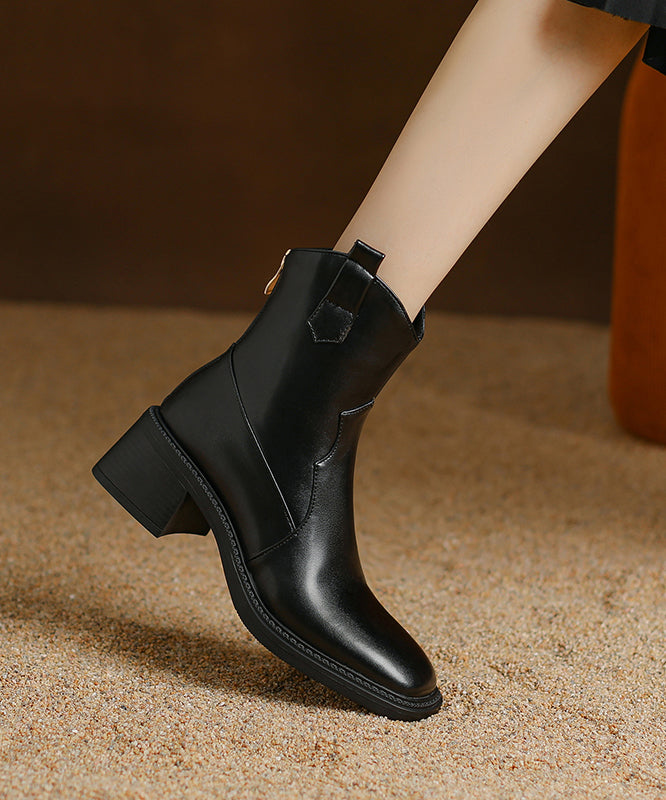 Brown Boots Chunky Faux Leather Plus Size Splicing Zippered