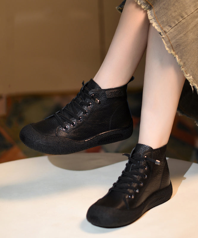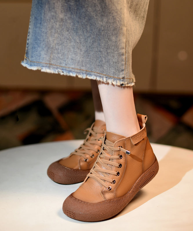 Brown Boots Cowhide Leather Vintage Splicing Cross Strap