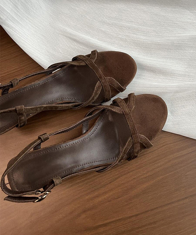 Brown Suede Splicing Wedge Sandals Peep Toe