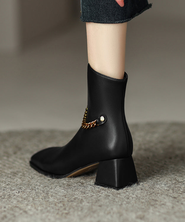 Caramel Boots Classy Splicing Chain Linked Chunky Cowhide Leather