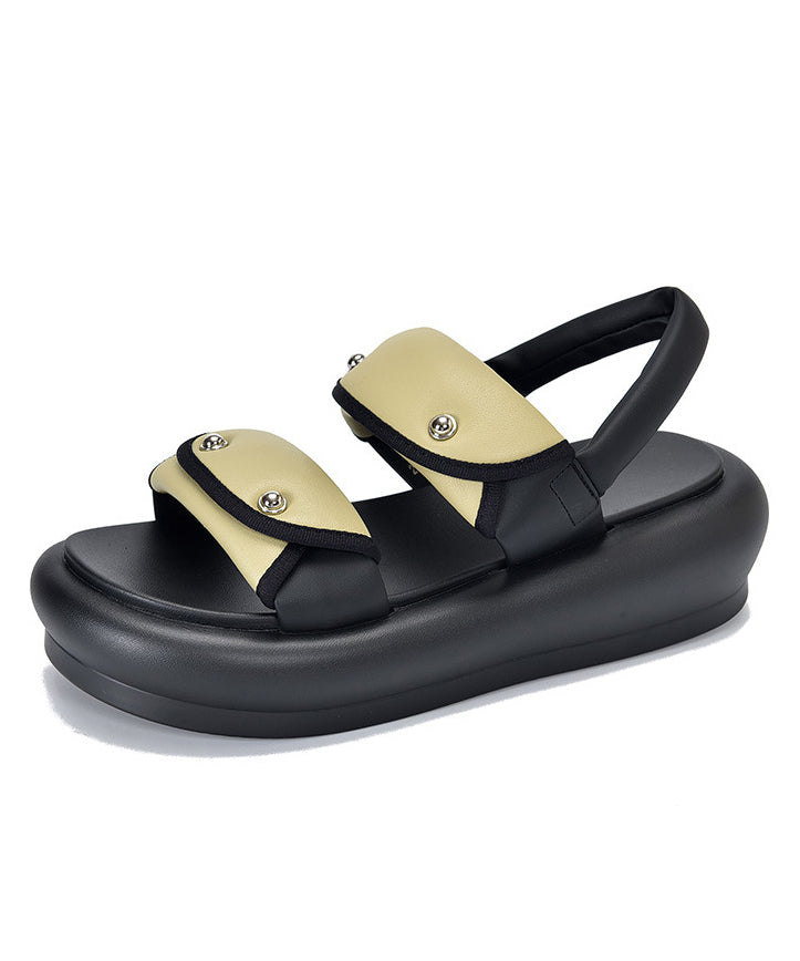 Casual Black Buckle Strap Rivet Splicing Platform Sandals