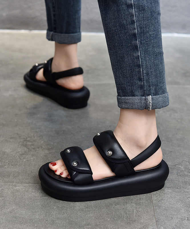 Casual Black Buckle Strap Rivet Splicing Platform Sandals