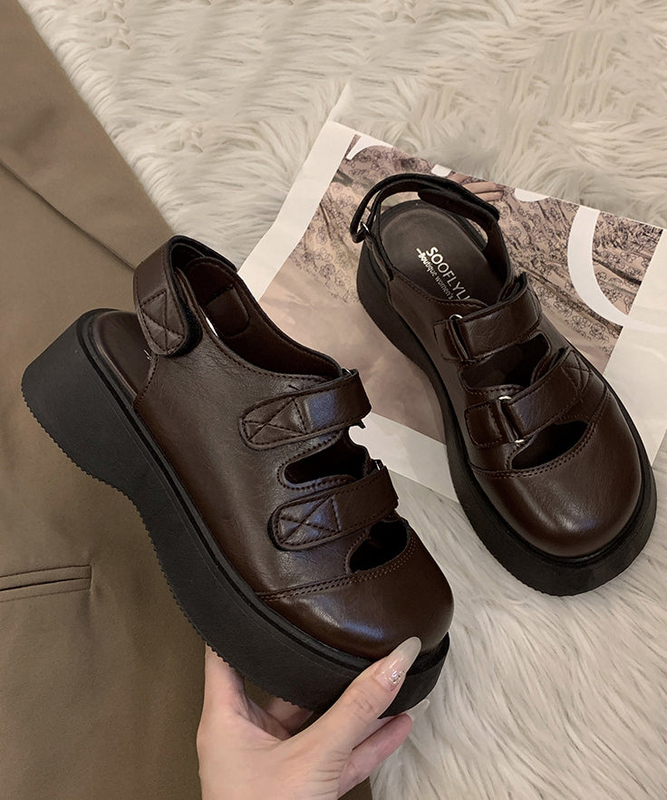 Casual Brown Faux Leather Sandals Splicing Hollow Out Sandals