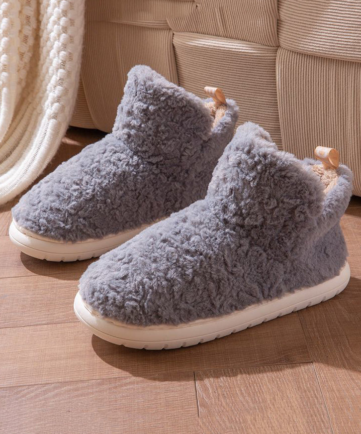 Casual Comfy Green Faux Fur Flat Shoes Fuzzy Wool Lined