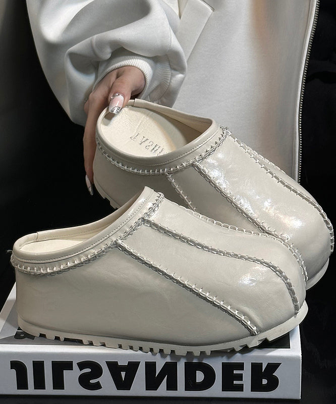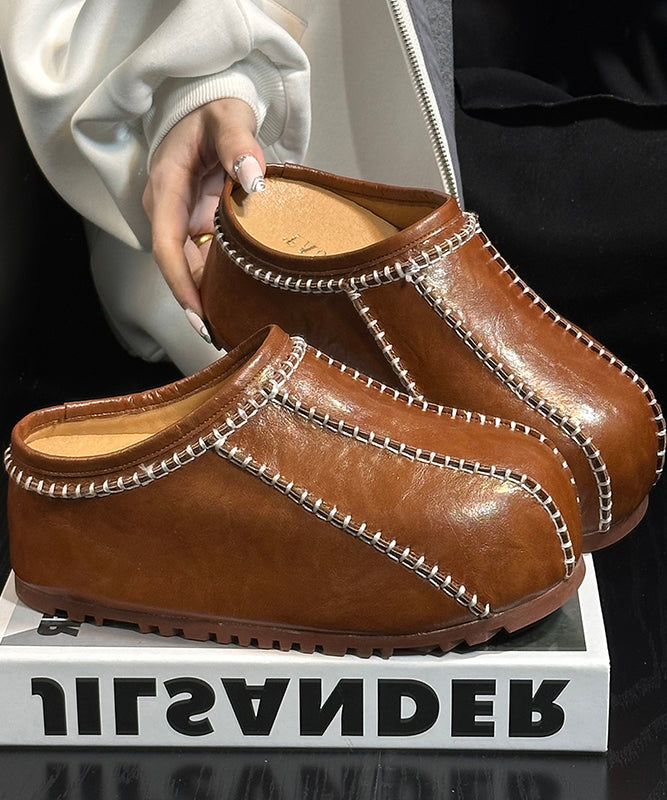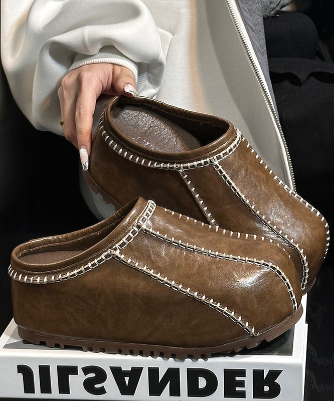 Casual Comfy Splicing Platform Black Cowhide Leather Slide Sandals
