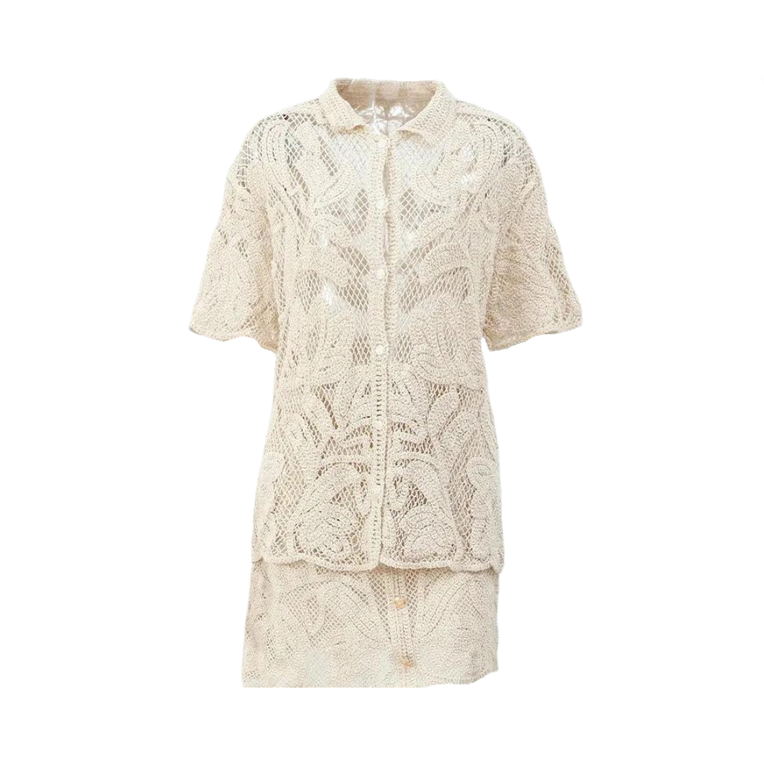 This Casual Hollow Out Shirt in combination with the Hollow Out Skirt is the perfect choice for a stylish and comfortable outfit. With its elegant design and breathable fabric. you'll feel confident and fashionable all day.