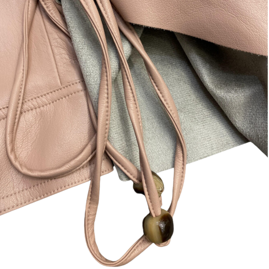 Made from faux leather. it offers a comfortable and loose fit while still giving a trendy look. Its waistband detail adds a touch of style and can be dressed up or down for any occasion.