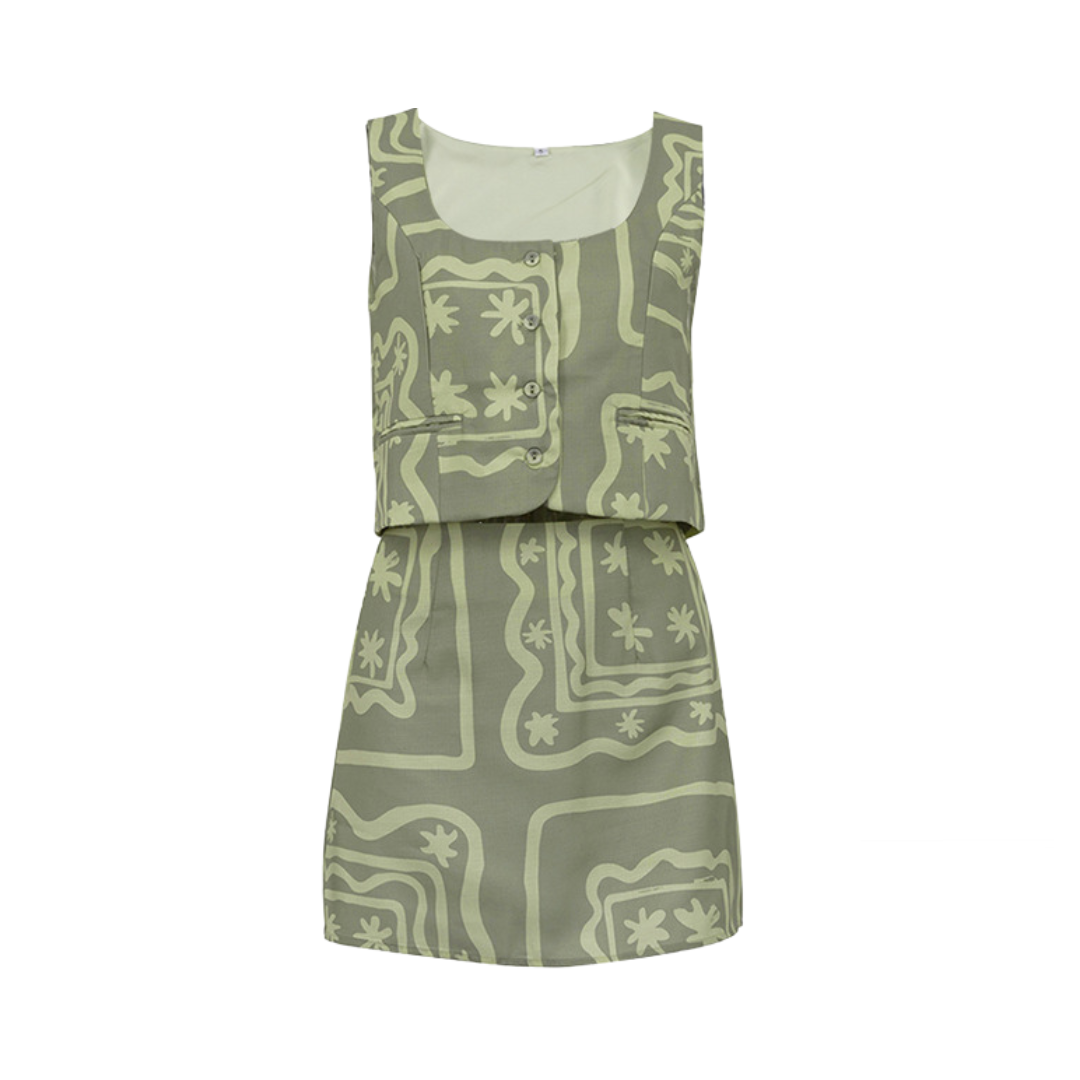 Made with lightweight fabric. this set is perfect for keeping you cool and comfortable on warm days. The stylish print adds a touch of fun to your outfit. while the sleeveless design and mini skirt allow for easy movement.