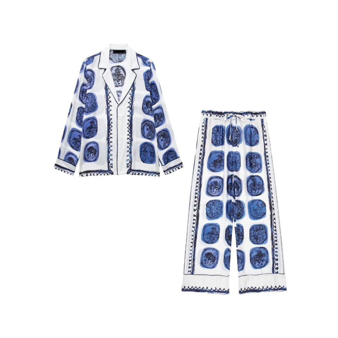 Elevate your casual wardrobe with this matching shirt and pants set. The printed design adds a touch of style while the long sleeves provide extra coverage.