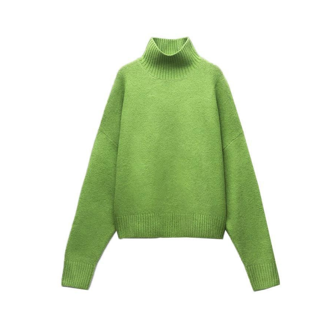 Featuring a turtleneck and loose knitted pullover. this long sleeve crop top is perfect for layering or wearing on its own. The oversized fit adds a trendy touch to your wardrobe.