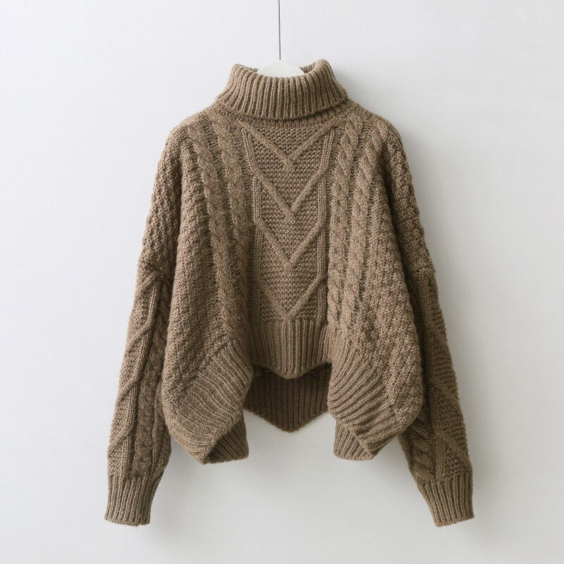Designed with a loose fit. bat sleeve. and turtleneck. this vintage-inspired sweater is perfect for any occasion. Made with warm and comfortable material. you'll be cozy and chic all season long.