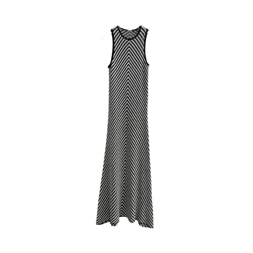 Perfect for any occasion. this dress features a stylish striped design and is made from a comfortable. knitted fabric. Stay on trend and comfortable all day long in this must-have dress.